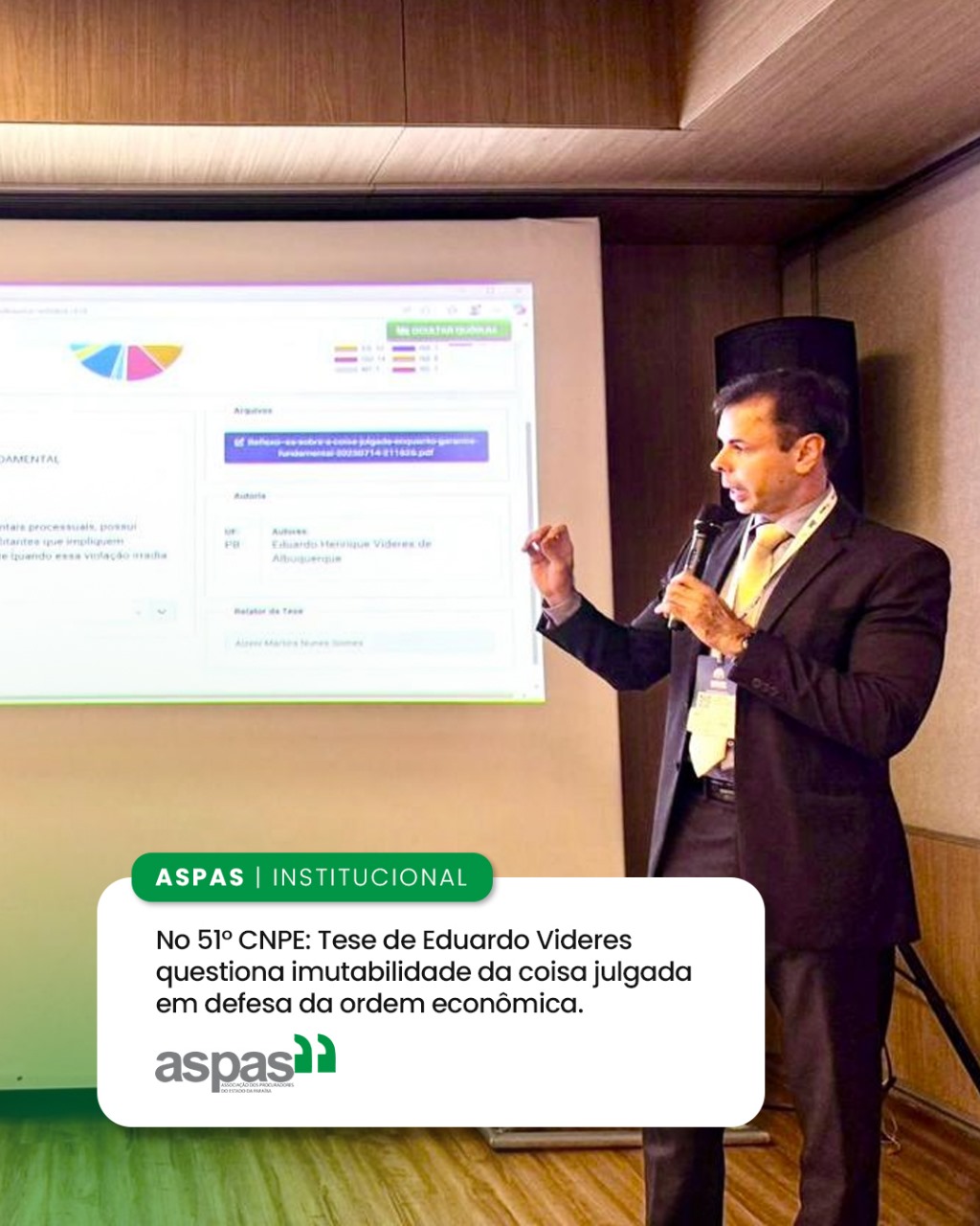 Fortaleza, CE – A segurança jurídica da coisa julgada, reconhecida como uma das principais garantias constitucionais, foi tema de destaque no 51º Congresso Nacional dos Procuradores dos Estados e do Distrito Federal (CNPE), realizado em Fortaleza. O procurador do Estado da Paraíba, Eduardo Videres, apresentou a tese “Reflexões sobre a coisa julgada enquanto garantia fundamental”, aprovada com louvor, em que defende a possibilidade de relativização da coisa julgada em situações específicas, a fim de proteger a ordem econômica.
